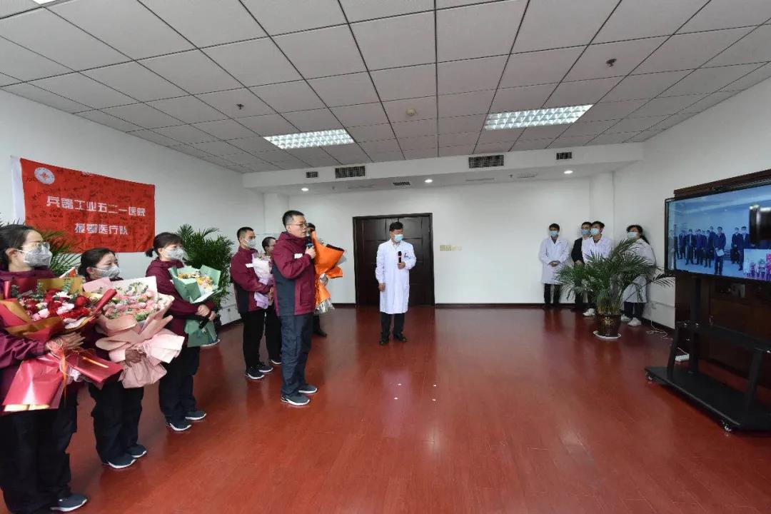 置業(yè)集團(tuán)521醫(yī)院2月2日、2月15日分兩批派出杭博、郭苓、緱豪兵、呂戈、侯永生、曹利娜、楊嬌等7名醫(yī)護(hù)人員馳援湖北抗疫一線。4月21日上午,返程隊(duì)員全部結(jié)束休整平安回院。焦開(kāi)河專程視頻連線521醫(yī)院7名援鄂醫(yī)療隊(duì)隊(duì)員,代表集團(tuán)公司黨組對(duì)援鄂醫(yī)療隊(duì)隊(duì)員致以崇高的敬意和誠(chéng)摯的慰問(wèn)。