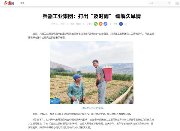 中國網(wǎng)報道兵器工業(yè)集團(tuán)助力云南省紅河州氣象保障 |